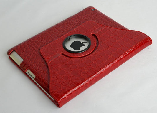 Ctech 360 Degrees Rotating Stand Leather Smart Case for Apple iPad 2 Red Luxury Crocodile Pattern