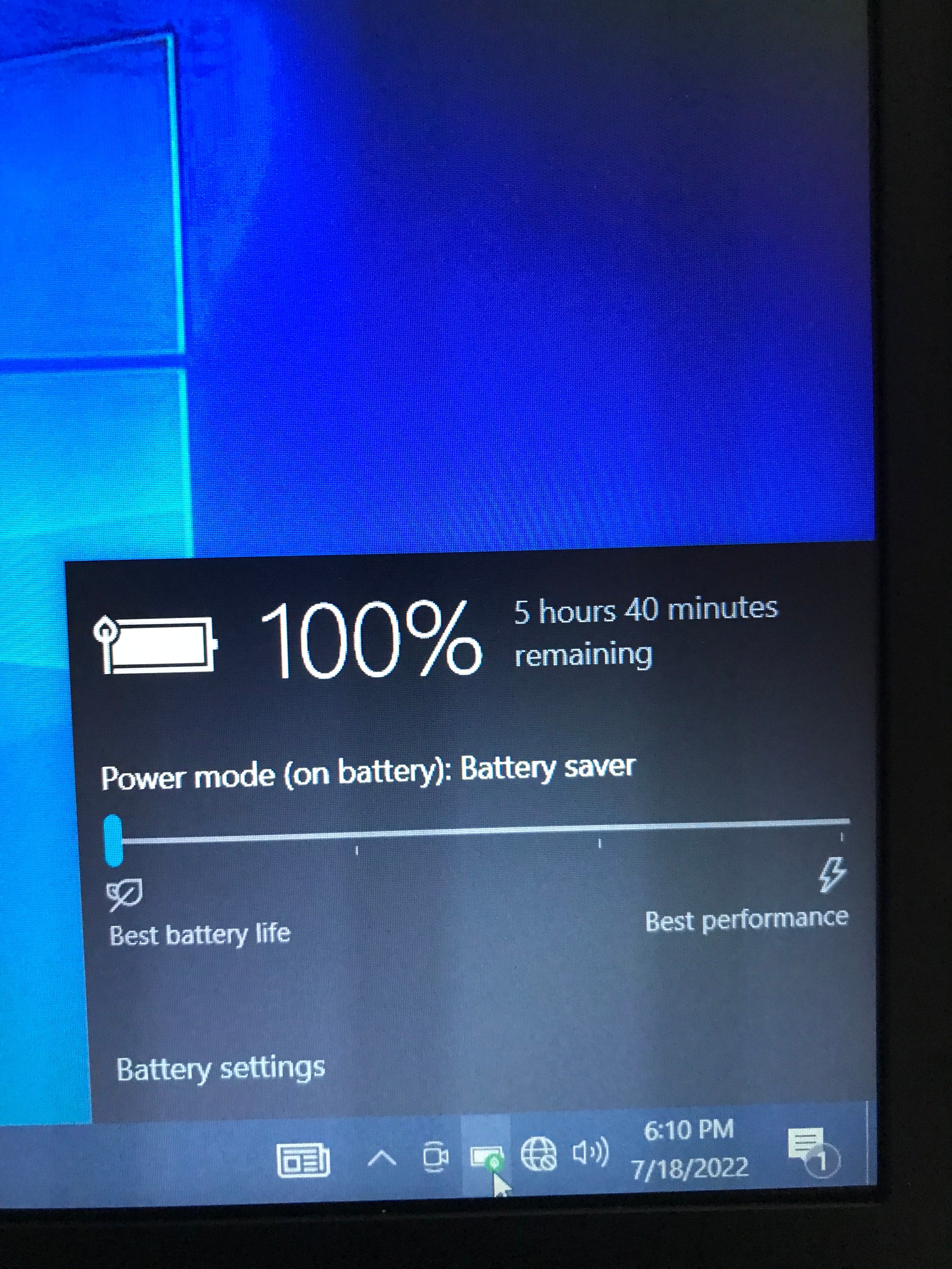 | Battery | @ 100% charged indicates 5 hours & 40 minutes |